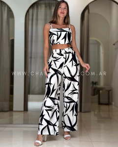 Conjunto estampado super suave, top pinzado con elastico ancho en la espalda. Pantalón con elastico en la parte de atras de la cintura.