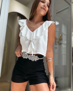Top con voladitos. Tiene lazo para atar en la espalda.